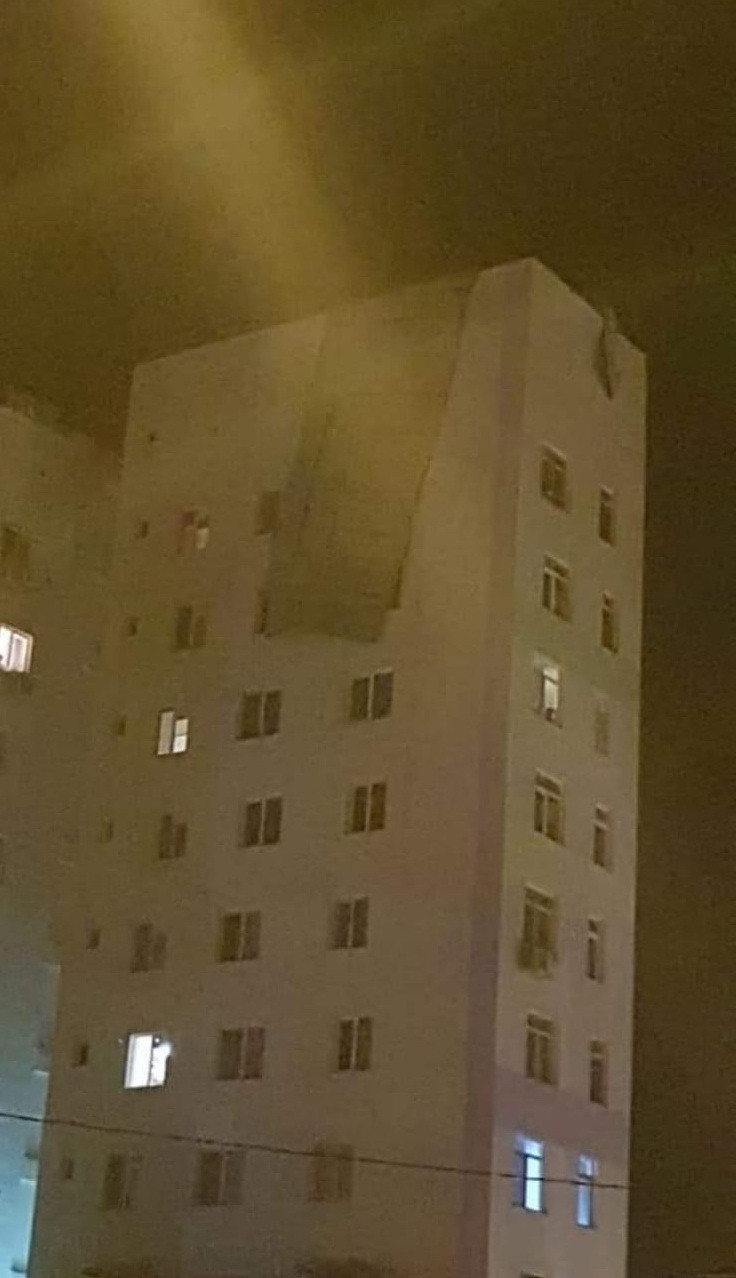 Blocul a fost finalizat în 2018, dar arată ca după război după furtună. O înregistrare arată cum plouă în interior după ce acoperișul a fost luat de vânt.