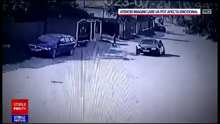 Un autoturism trece pe lângă el, iar după câteva secunde, când băiatul înaintează, șoferul dă brusc înapoi și îl lovește cu mașina.