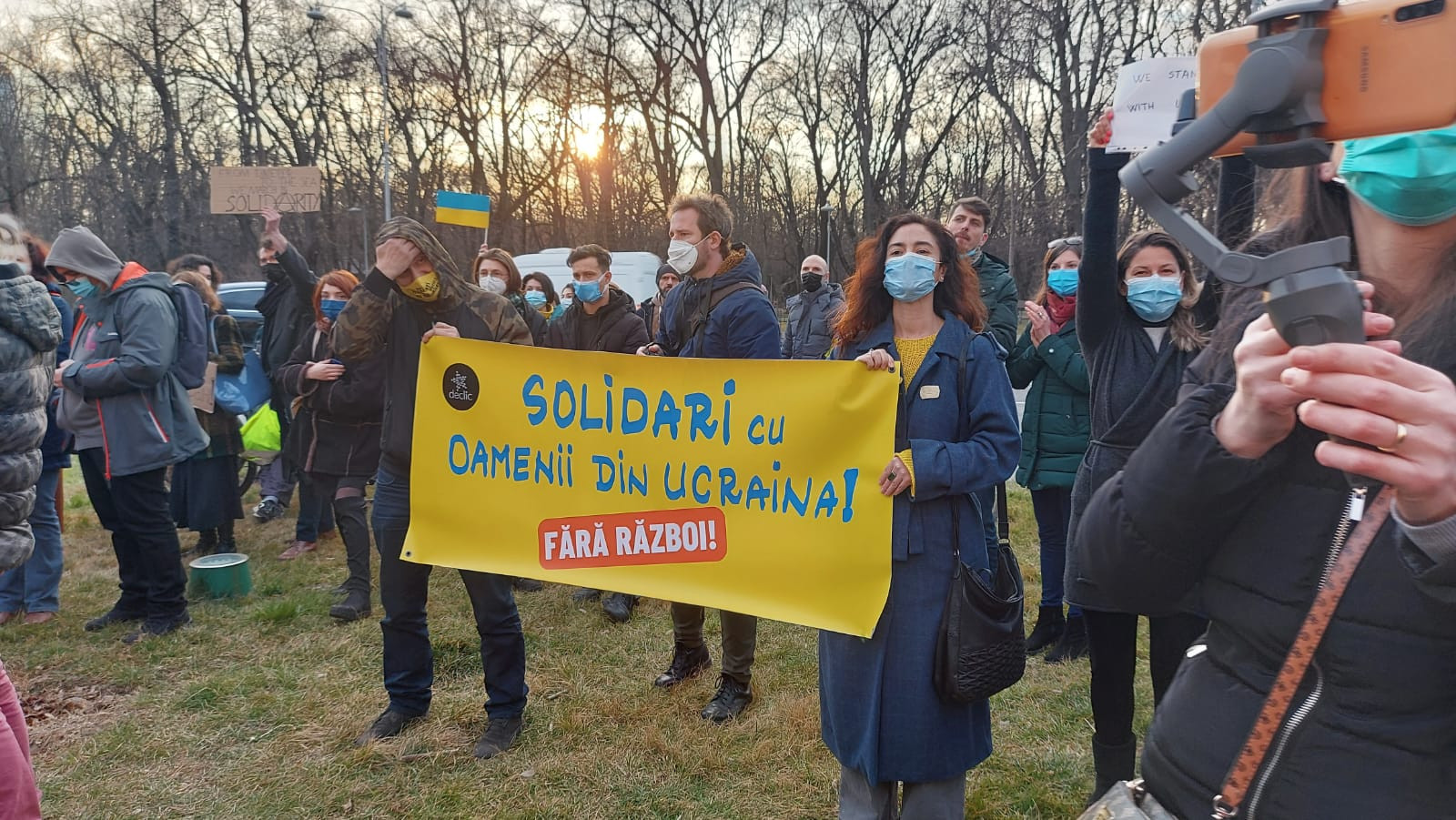 Mitingul pașnic de sprijin a ucrainenilor a început la ora 16.30 și a adunat în fața Ambasadei Ucrainei sute de bucureșteni, printre organizatori aflându-se Corupția Ucide și Vedem Just, potrivit b365. Andrei Stanca