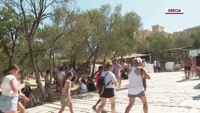 Cel mai vizitat sit antic din Grecia se află pe o colină stâncoasă aproape lipsită de umbră. Ministerul elen al Muncii a sfătuit angajații cu probleme de sănătate să lucreze de acasă, pentru a evita deplasarea prin căldură.