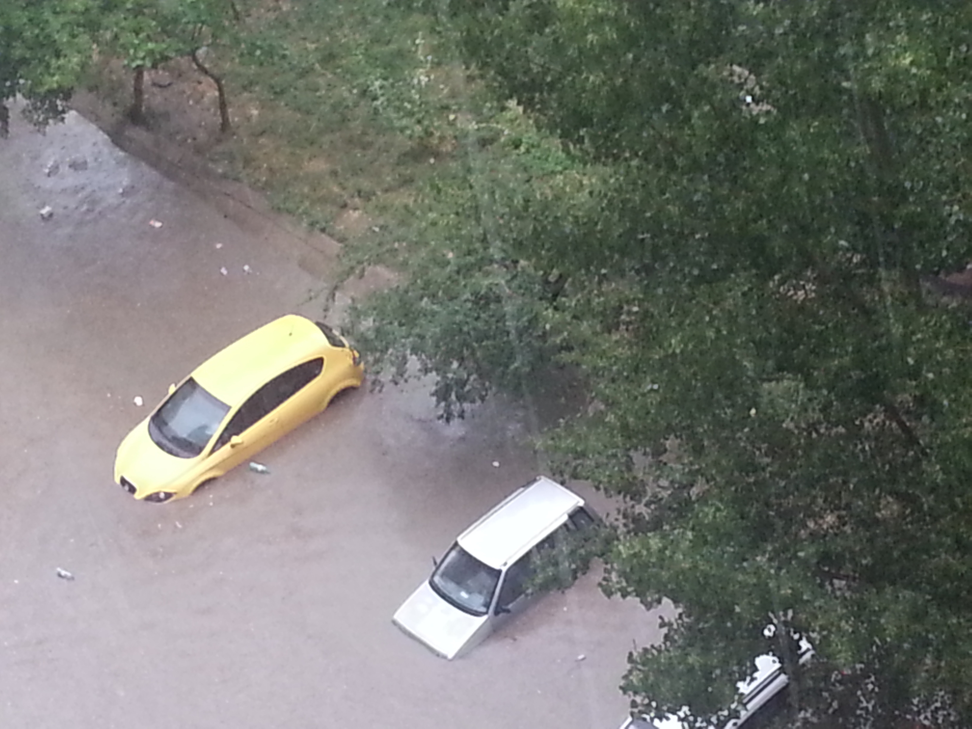 Meteorologii estimeaza ca, in aceasta zona, cantitatea de apa cazuta in ultimele ore se apropie de 100 de litri pe metru patrat, cu mult peste cantitatea medie asteptata in toata luna iunie.