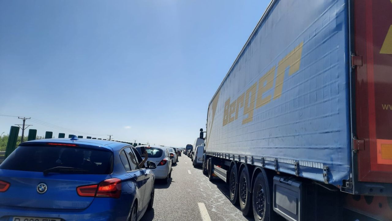 Traficul rutier este oprit total pe sensul către Constanța, formându-se coloane de autoturisme.
