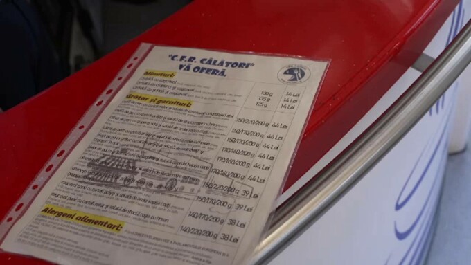 Bucătăria vagonului are în meniu și cotlet de porc cu ciuperci sote și salată de ardei copți, la 44 de lei. Pentru aceeași sumă, puteți alege și un piept de pui cu garnitură. Ceva mai puțin plătiți pentru cârnați oltenești sau pentru o porție de cașcaval pane cu cartofi prăjiți, care ajunge la 38 de lei. La desert - înghețată la pahar de 12 lei, în timp ce o bere obişnuită din comerț - costă 10 lei în restaurantul CFR Călători.