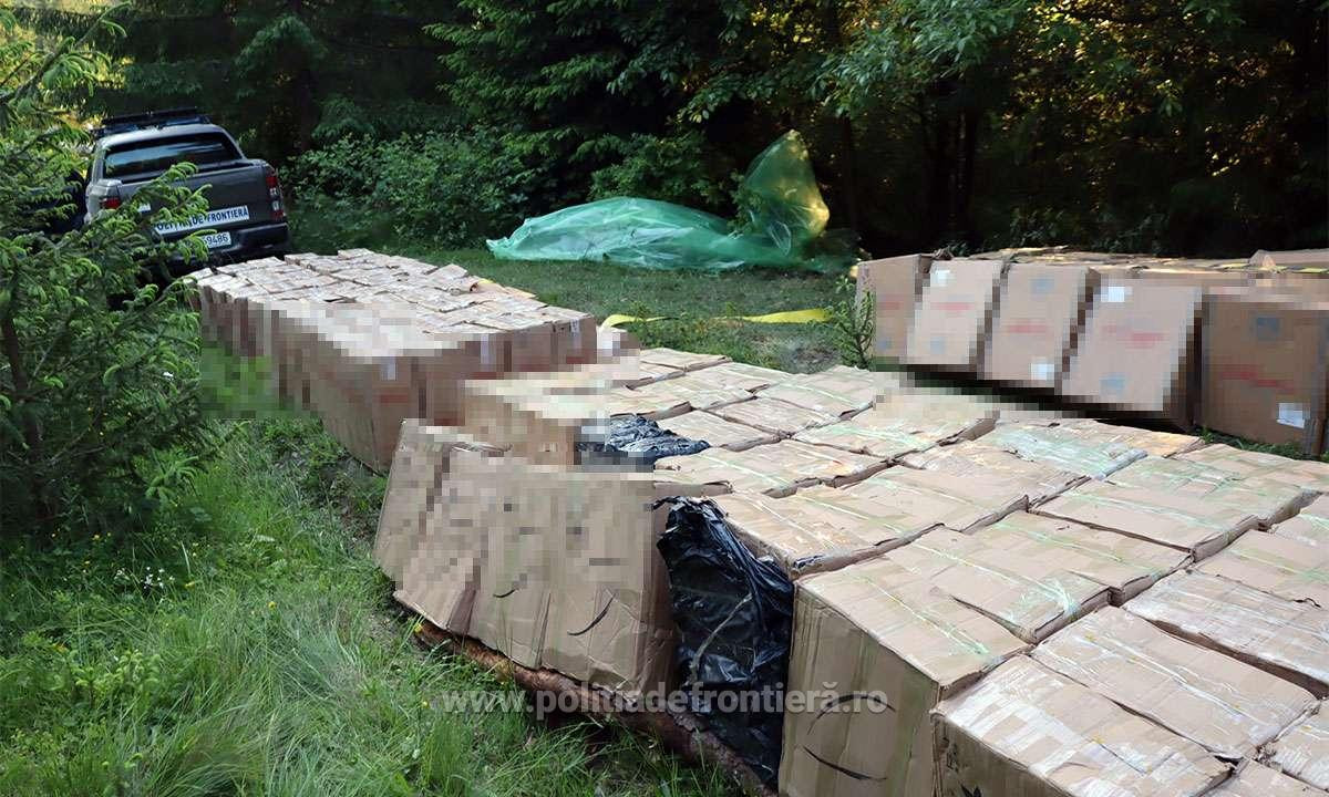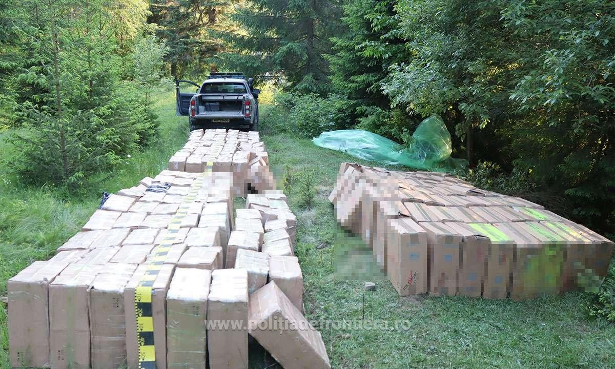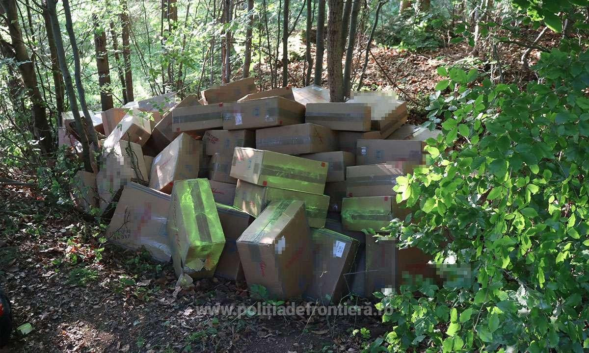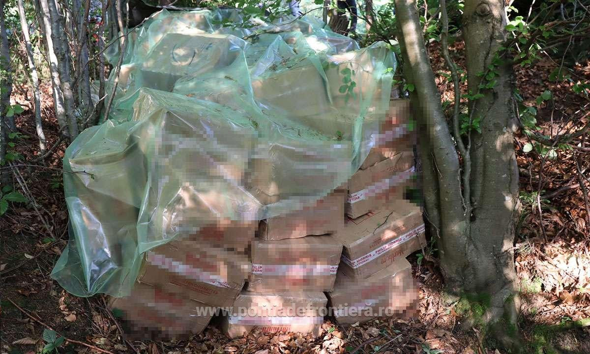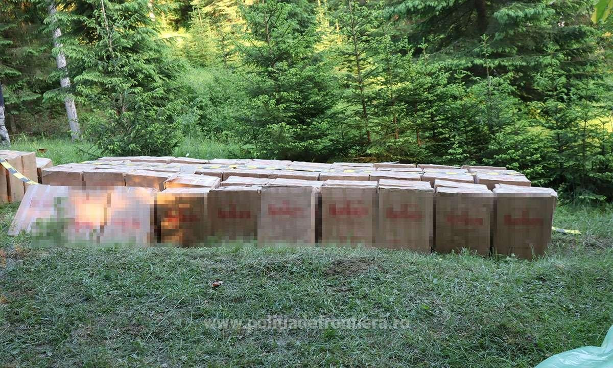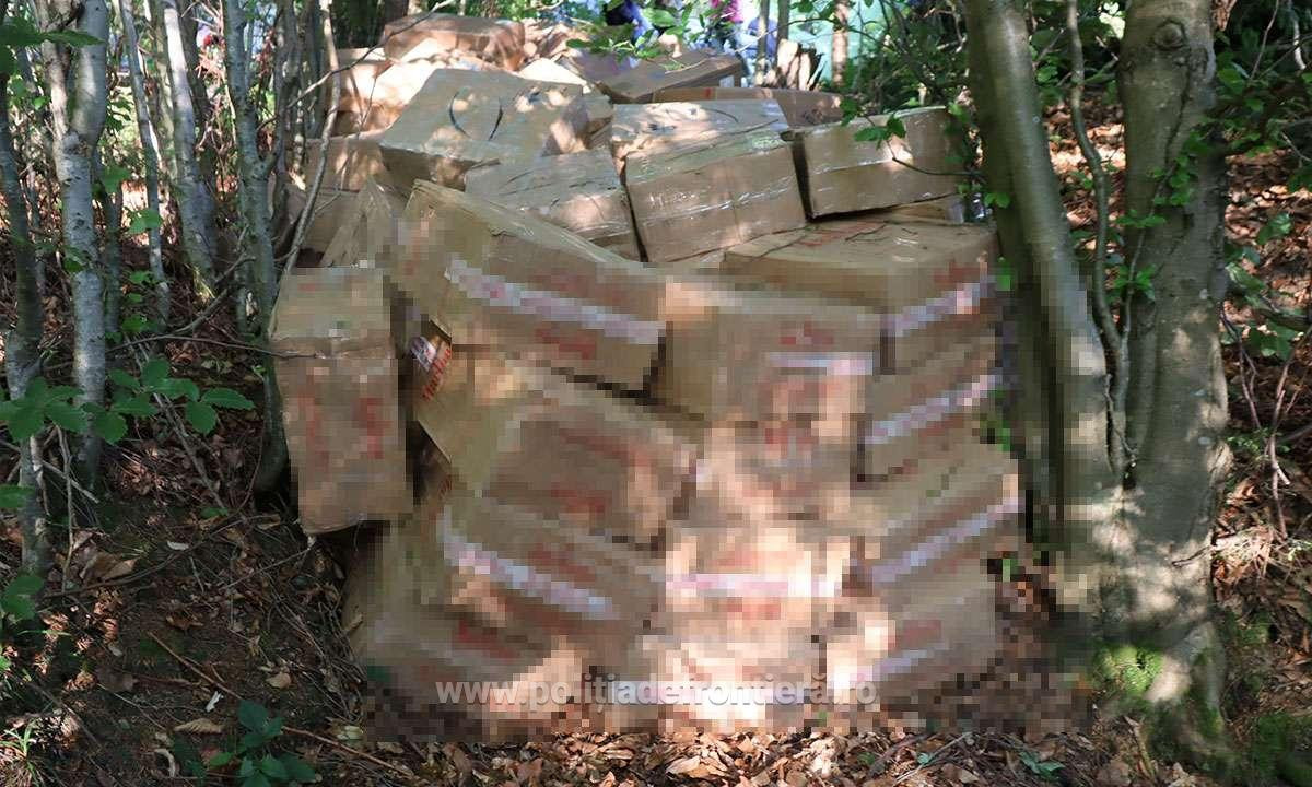 Poliţiştii de frontieră din Brodina au descoperit 90.000 de pachete de ţigări duty-free, ascunse în vegetaţie, în valoare de peste 1,7 milioane de lei.