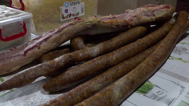 Anuța Rus: „Asta e cârnat afumat, cu carne, coaste cu de toate, slănină, picior de porc pentru răcitură."