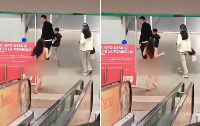 Tânăra a fost filmată când se plimba dezbrăcată în mall, iar imaginile au ajuns în spaţiul public.