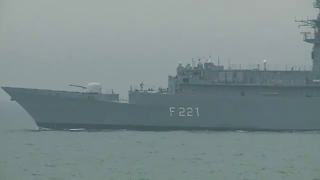 În acest moment se execută deplasarea în convoi printr-o zonă minată. Este un exerciţiu simulat. Calea este deschisă de un dragor românesc, urmat de un distrugător canadian şi unul olandez.