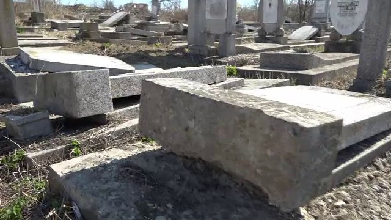 Imagini dezolante în cimitirul evreiesc din Huşi, judeţul Vaslui, care a fost vandalizat de mai mulţi indivizi. Peste 70 de monumente funerare au fost distruse în toiul nopţii, iar poliţiştii încearcă acum să dea de urma vinovaţilor.