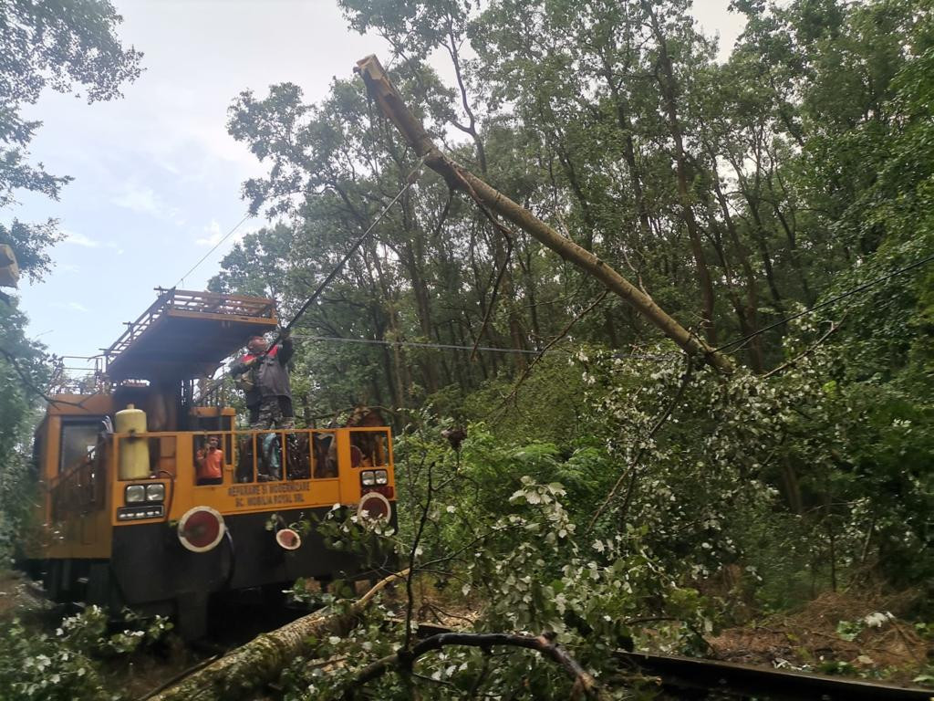 „Trenurile au fost oprite temporar, pe parcursul nopţii, în diferite gări, pentru a permite accesul drezinelor pantograf şi intervenţia personalului feroviar, atât cât pentru îndepărtarea copacilor, cât şi pentru repunerea sub tensiune a firului de contact”, transmite CFR.