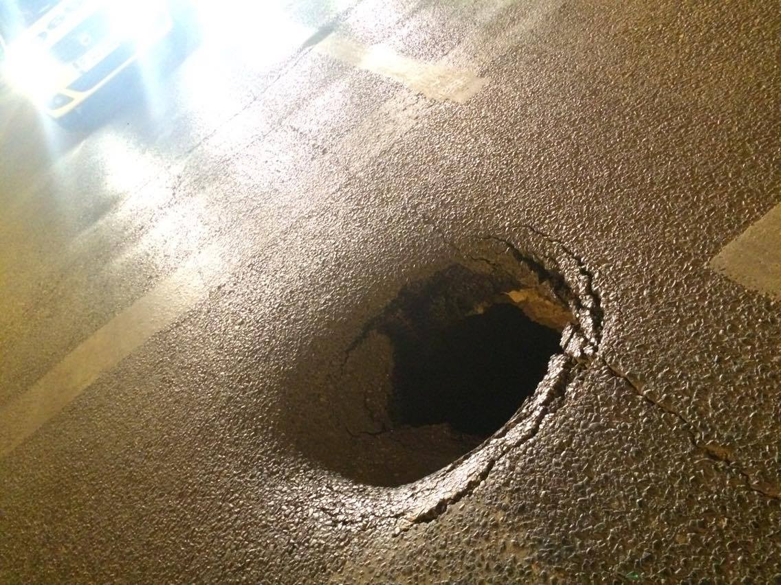 Groapa s-a format pe mijlocul caii de rulare, intre prima si cea de-a treia banda de circulatie. Dupa ce mai multi soferi au anuntat la Brigada Rutiera pericolul, politistii au dispus restrictionarea accesului pe aceasta banda si instalarea se balize pentru semnalizare. Deocamdata nu se cunoaste daca au existat masini care sa fi fost avariate din cauza surparii carosabilului. Groapa are aproximativ 75 de centimetri diametru si o adancime de peste un metru.