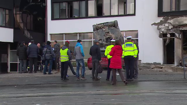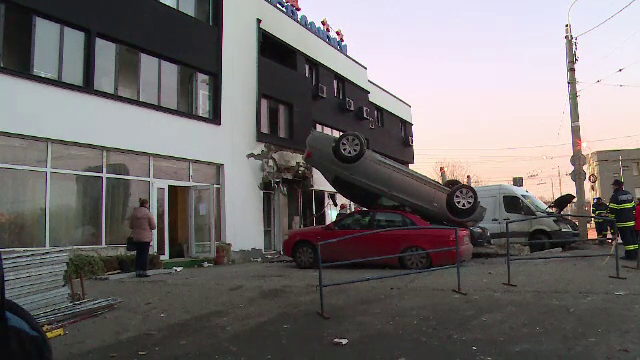Medicii SMURD i-au acordat primul ajutor şi unui bărbat care se afla în maşină, la semafor, şi s-a trezit cu o bucată de bordură în parbriz. Intervenţia pompierilor a fost extrem de dificilă.