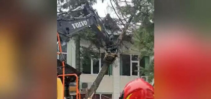 Vântul a bătut cu putere și în zonele mai joase. În județul Botoșani, un brad din curtea Spitalului Darabani s-a prăbușit peste acoperiș.