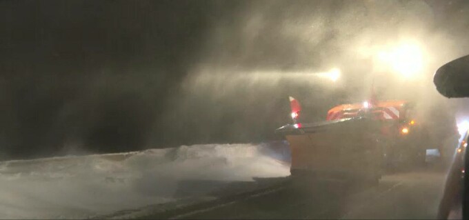 Vizibilitatea în zonă ajunge la zero în locurile unde zăpada spulberată de pe creste a fost adusă pe șosea.