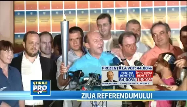 Basescu: "Romanii puteau sa spuna DA si sa mearga spre est cu Voiculescu si Antonescu. Ei au spus NU si au mers catre Europa, catre NATO. Votul n-a fost petru mine, a fost pentru Romania. S-au manifestat asa cum le permite legea si constiinta. Cei mai multi au ramas acasa."