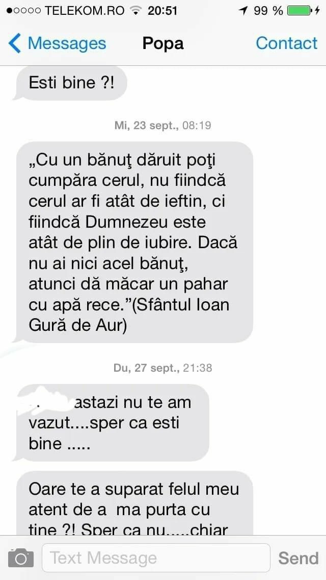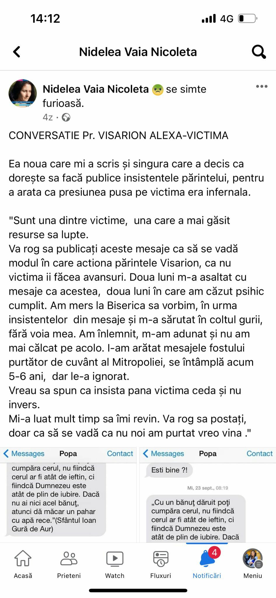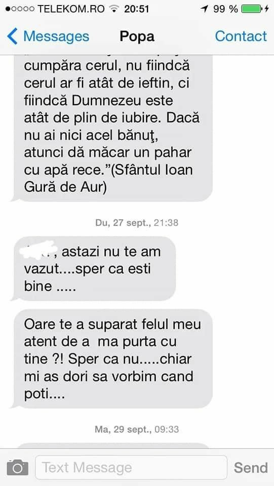Au apărut noi mesaje acuzatoare la adresa preotului Visarion Alexa. Încă o femeie povestește că părintele i-a făcut avansuri și chiar a sărutat-o când au fost împreună. Pentru a dovedi că nu minte a publicat și capturi cu mesajele.