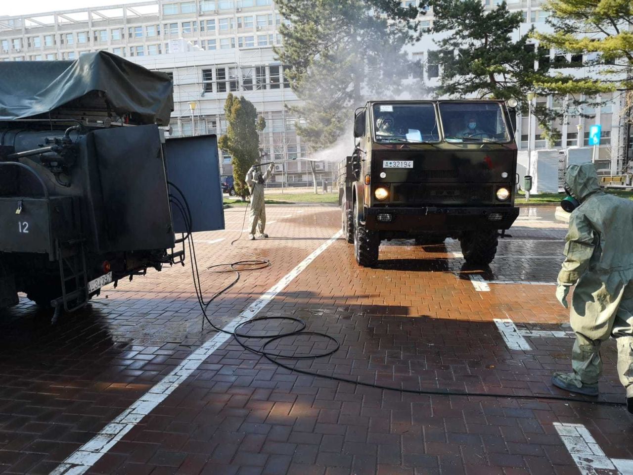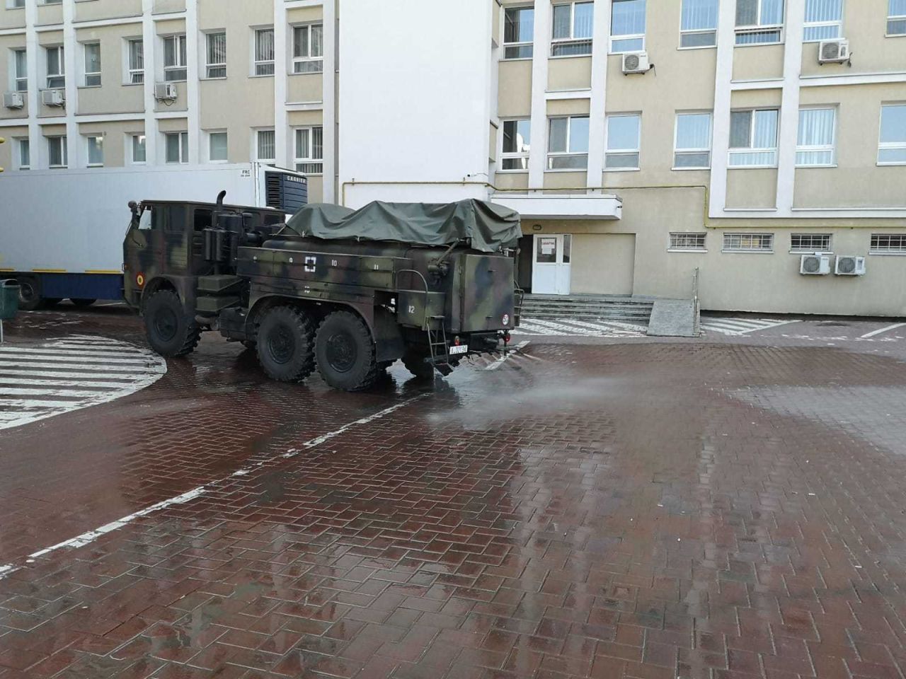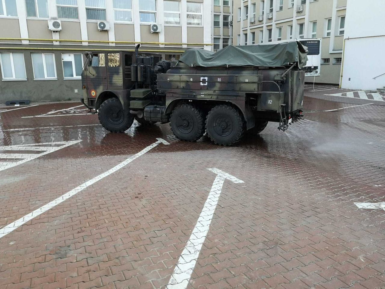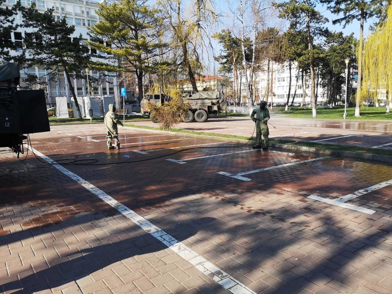În GALERIA FOTO de mai jos găsiți imagini din timpul misiunii detașamentului din cadrul Batalionului 202 Apărare CBRN (Intervenție la Dezastre) „General Gheorghe Teleman” care acționează pentru decontaminarea și dezinfectarea spaţiilor de circulație ale Spitalului județean din municipiul Suceava.