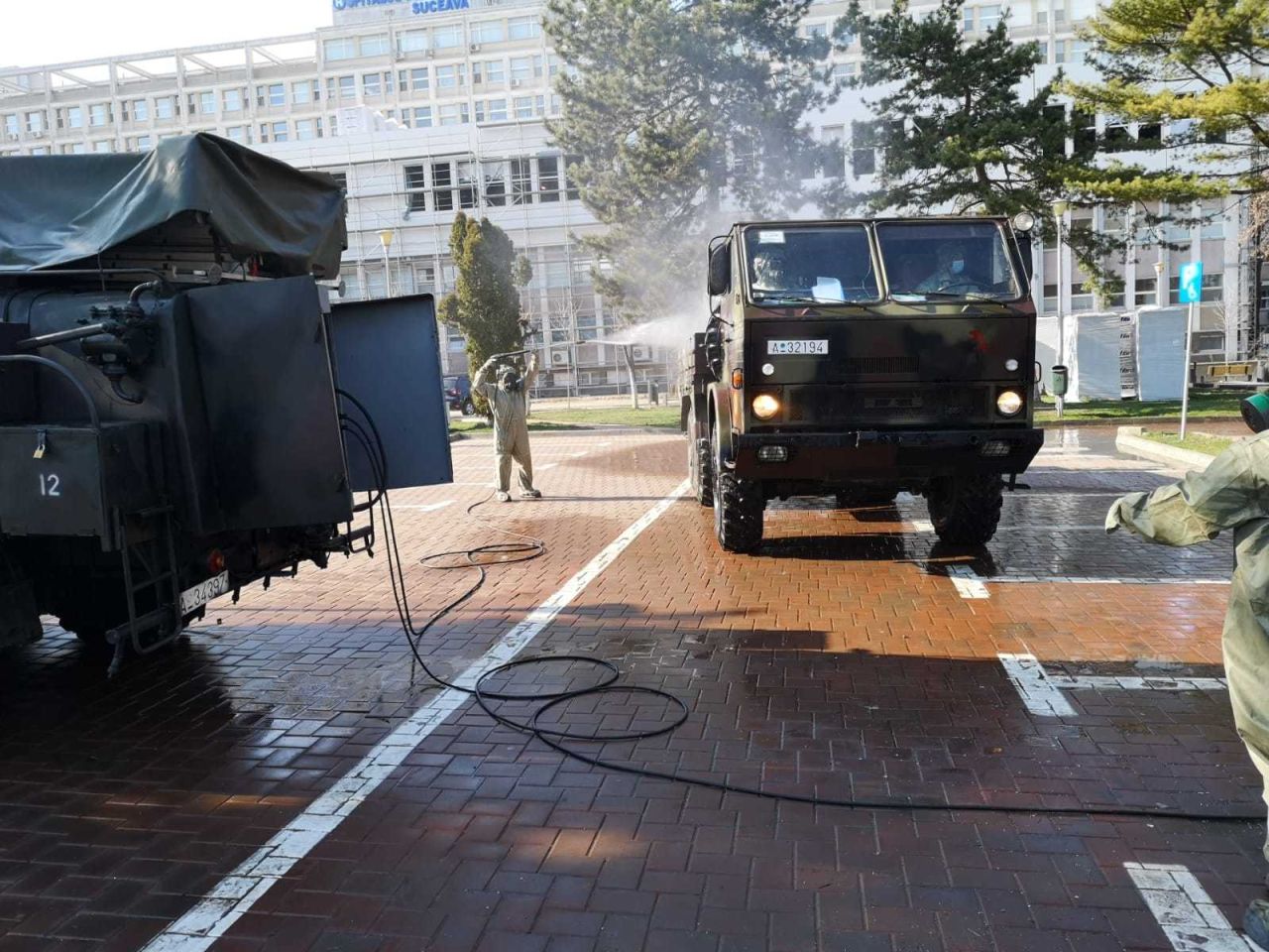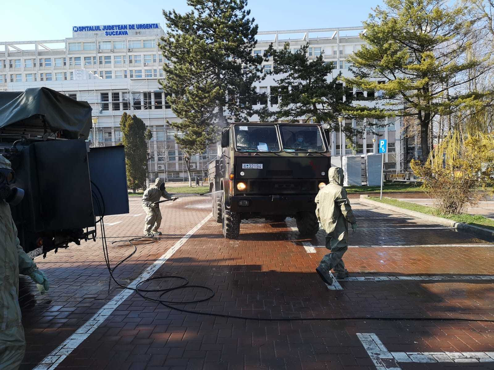 Cu ajutorul militarilor din Batalionul 202 Apărare CBRN din Huși, au fost dezinfectate spaţiile de circulație în încinta spitalului județean. De asemenea, s-au instituit noi proceduri de dezinfecţie în interiorul spitalului conform indicațiilor epidemiologice. A fost efectuat instructaj cu tot personalul medical și auxiliar despre purtarea echipamentului de protecție. Noua echipă managerială a solicitat Ministerului Apărării Naţionale să sprijine cu personal medical militar activitatea din Spitalul Judeţean de Urgenţă din municipiul Suceava, pentru a asigura continuitatea în secţiile medicale. În acest sens, MApN a dispus prin Direcţia Medicală să suplimenteze cu personal medical militar unitatea medicală din Suceava.