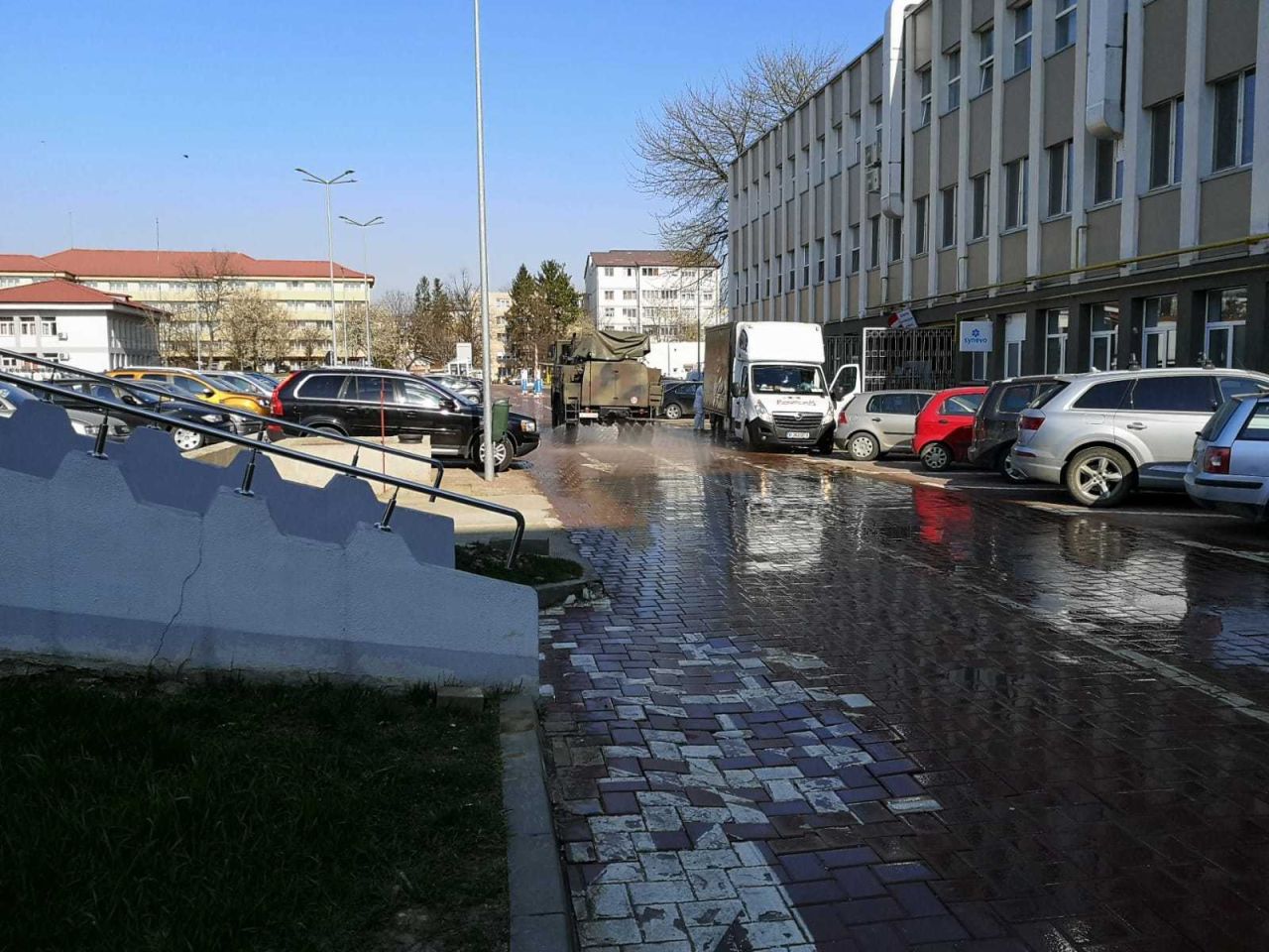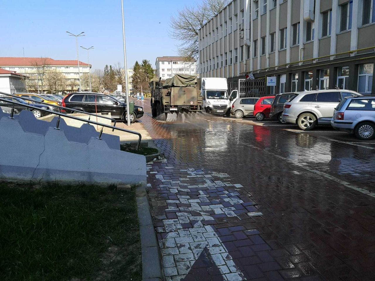Pacienţii non-Covid au fost deja izolaţi într-un corp al spitalului, cu circuite separate, iar vineri seară, un batalion sosit de la Huşi va dezinfecta curtea spitalului şi în zilele următoare vor dezinfecta străzile oraşului. Voluntarii aduc echipamente şi dezinfectanţi şi în curând va ajunge în Suceava şi al treilea echipament PCR pentru testele Covid 19.