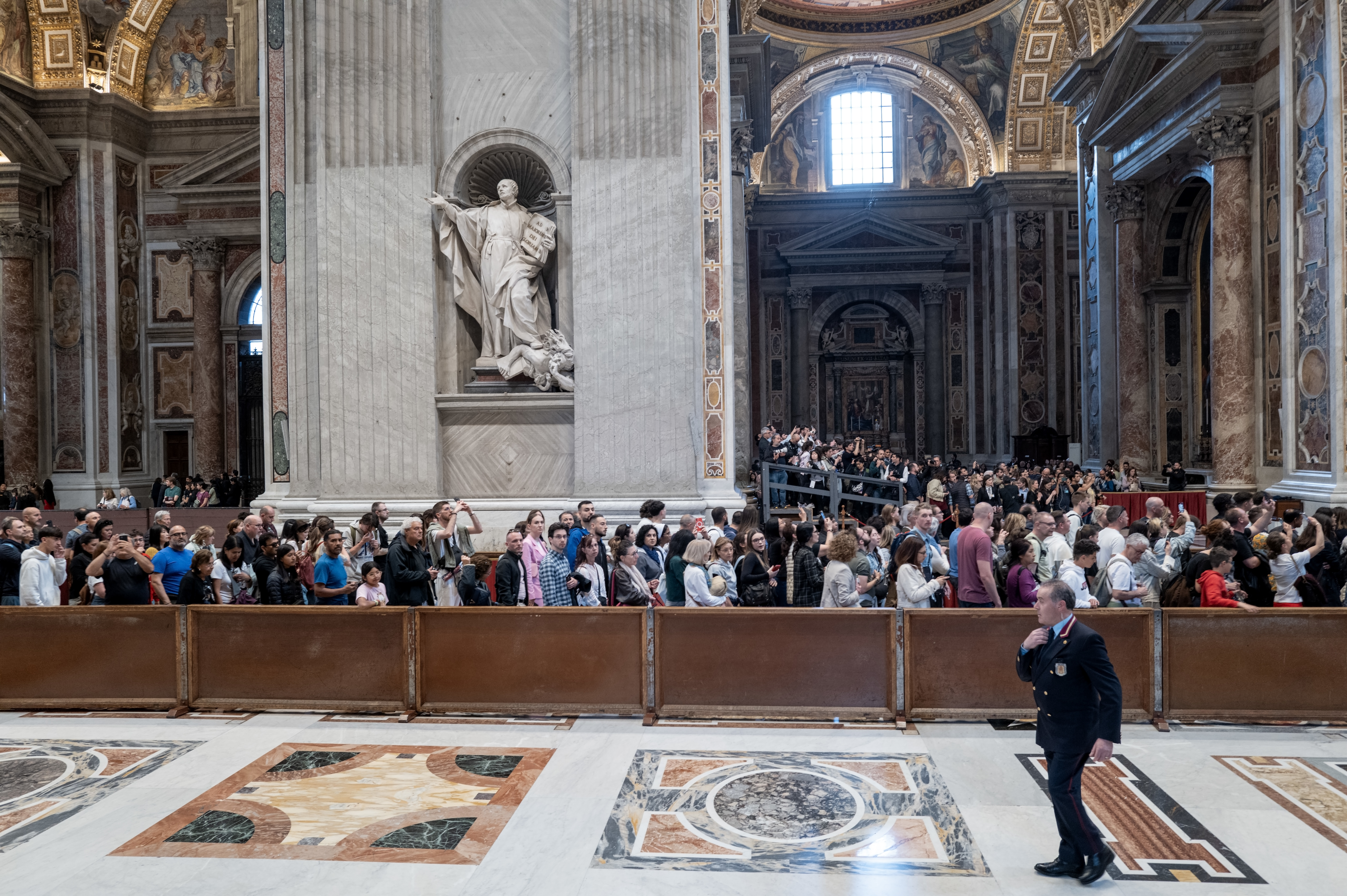 Începând de miercuri, de la ora 9.00 GMT (12.00, ora României) şi până joi, la ora 11.00 GMT (14.00, ora României), aproximativ 61.000 de persoane s-au recules în faţa sicriului iezuitului argentinian în monumentala Bazilică Sf. Petru, potrivit aceleiaşi surse.