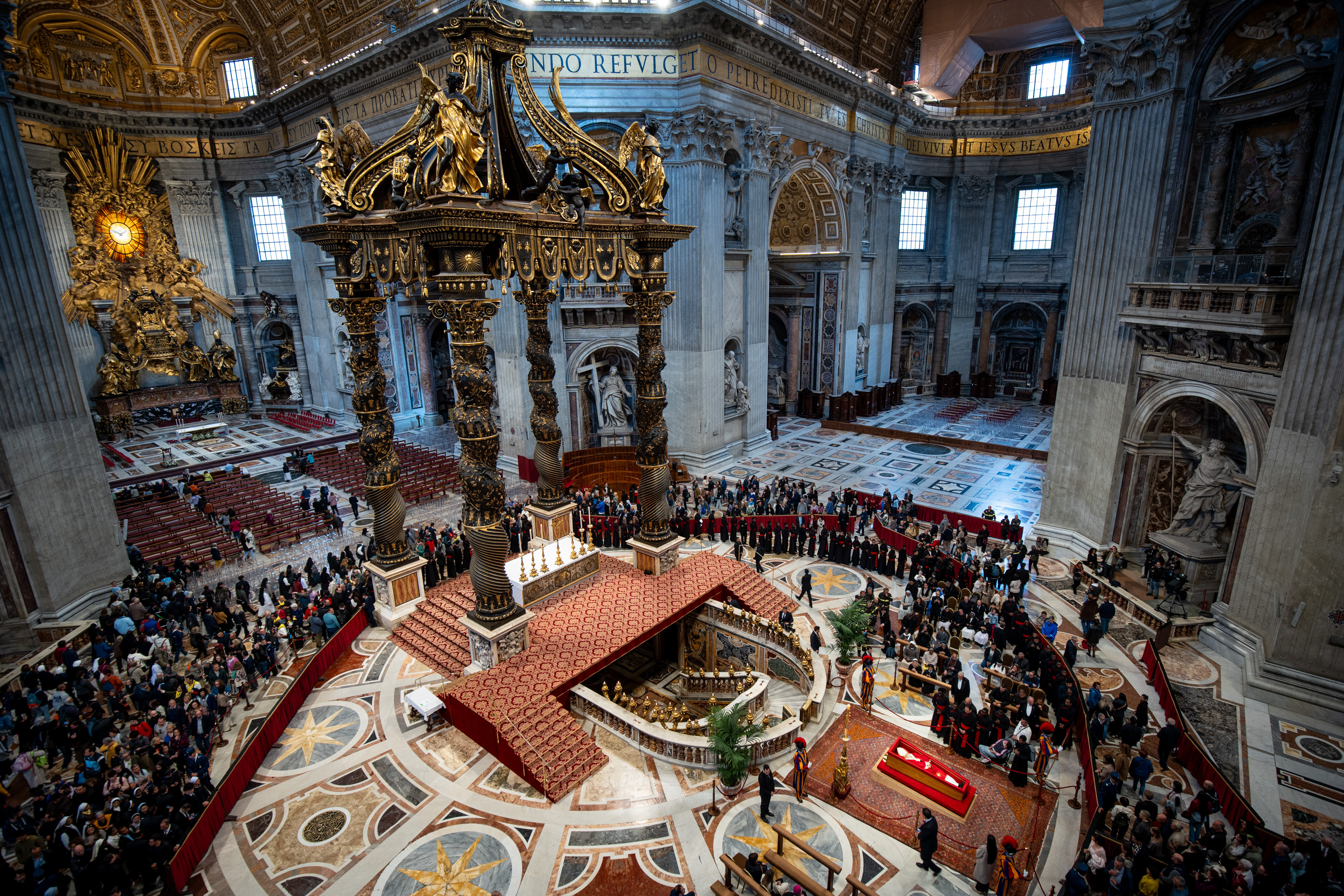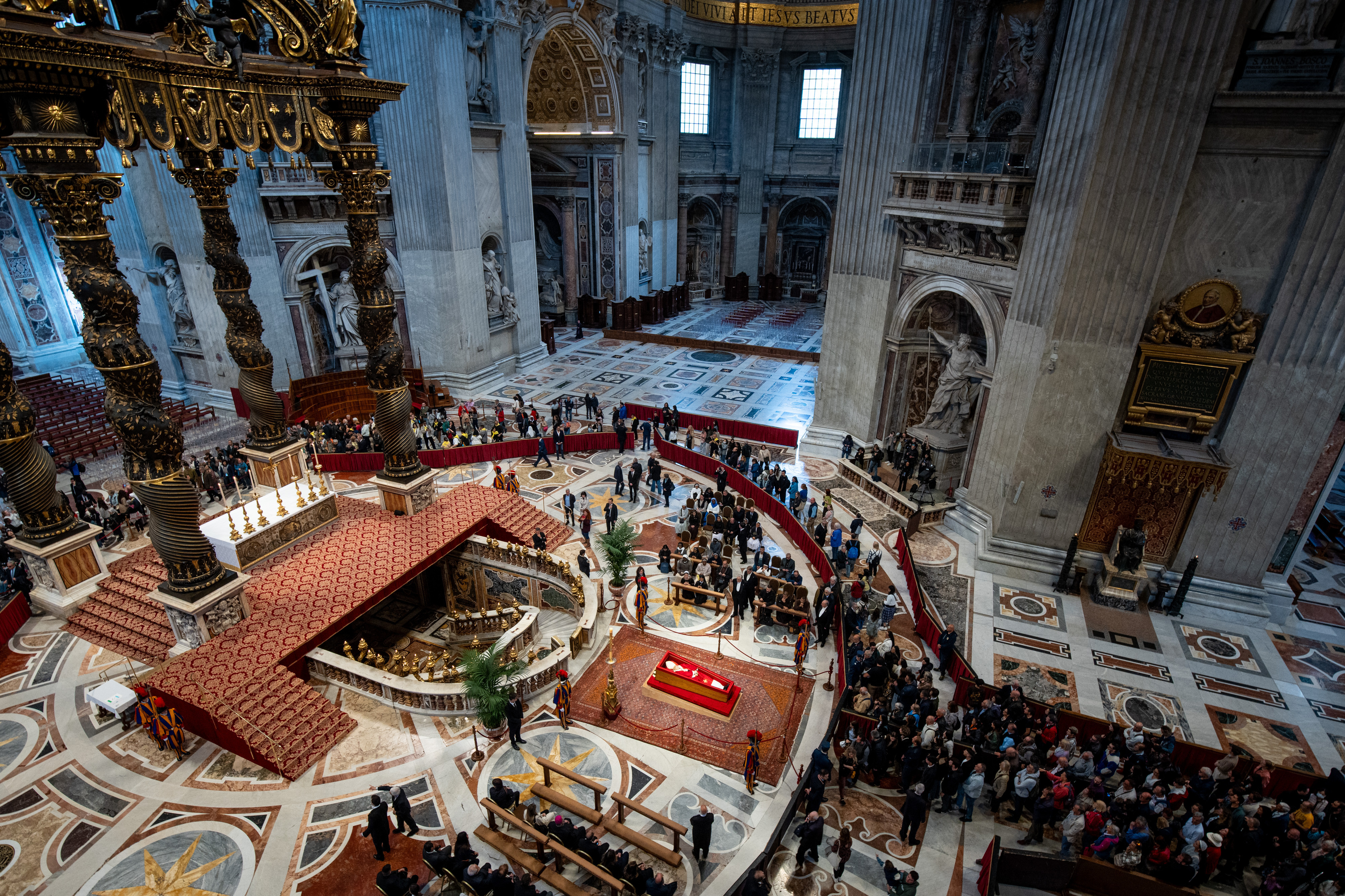 Miercuri, rămăşiţele Papei au fost escortate de zeci de cardinali, episcopi, religioşi şi laici de la reşedinţa Sf. Martha, unde a locuit de la alegerea sa, în 2013, şi până când a murit, către Bazilica Sf. Petru.