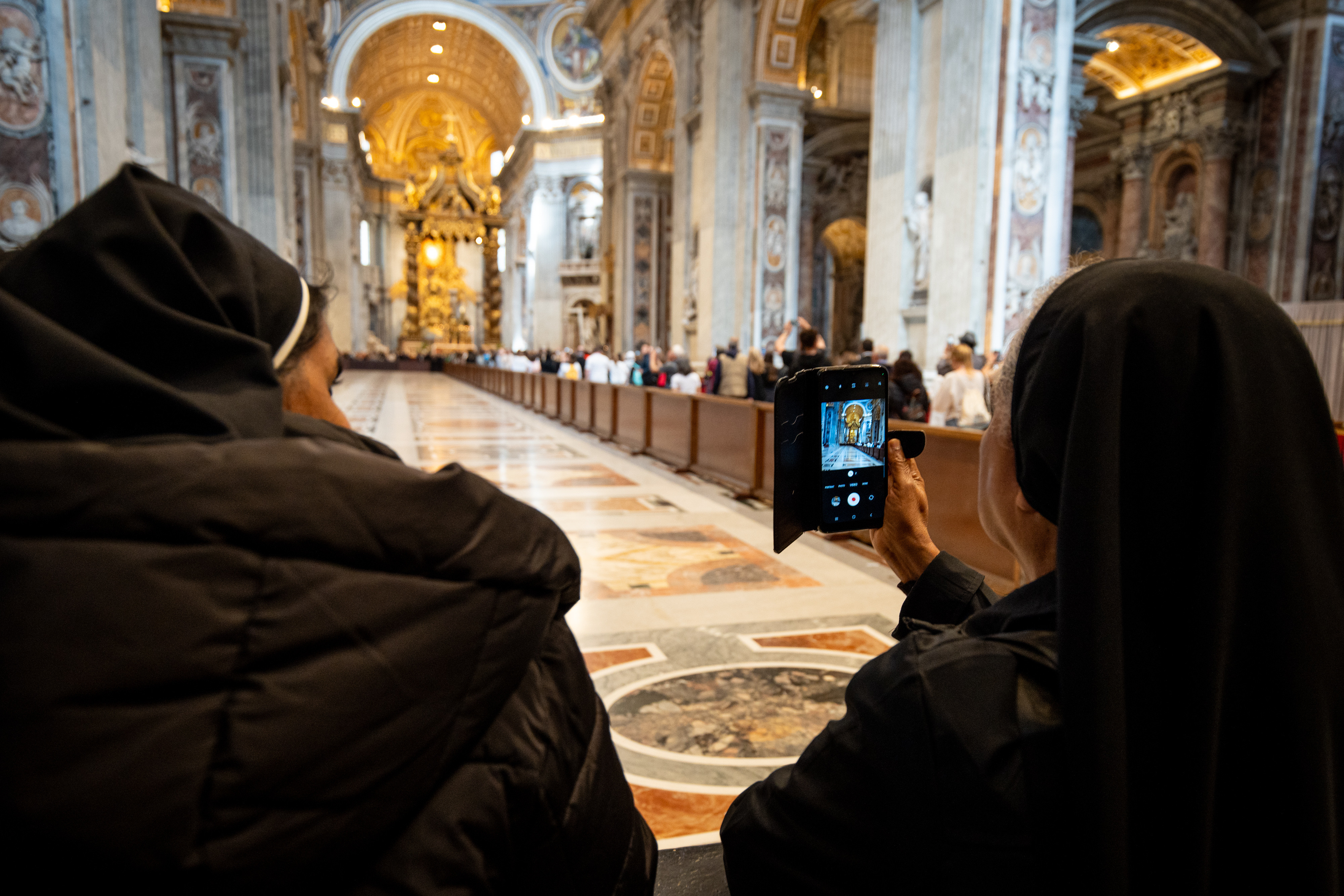 Însă, spre deosebire de miercuri, nicio forografie nu este autorizată înăuntrul bazilicii - o interdicţie care a fluidizat mult defilarea pelerinilor prin faţa sicriului deschis al Papei.