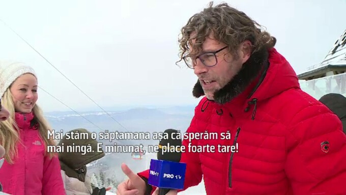 Martin, turist străin: Ne simțim minunat, iubim Poiana Brașov. Mai stăm o săptămână, așa că sperăm să mai ningă. E minunat, ne place foarte tare!