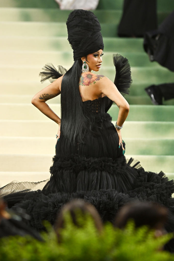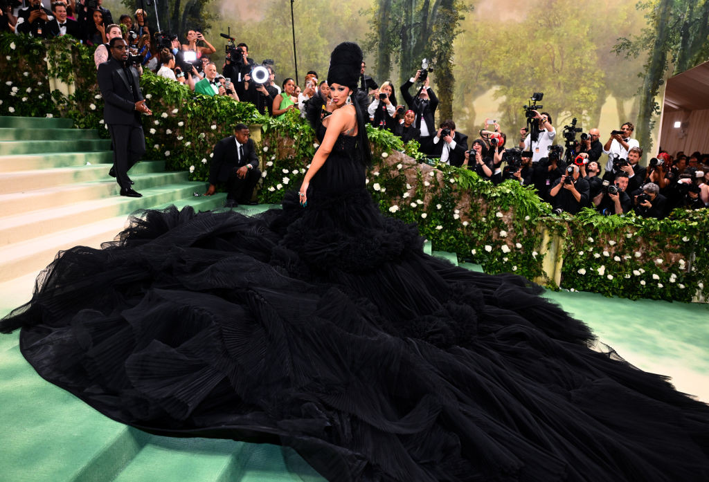 Rochia neagră din tul a vedetei a fluturat pe faimoasele trepte ale Metropolitan Museum of Art. Cardi B a umplut, la propriu, treptele de la Met Gala. Ea a avut nevoie de o armată de oameni care să o ajute să pozeze.