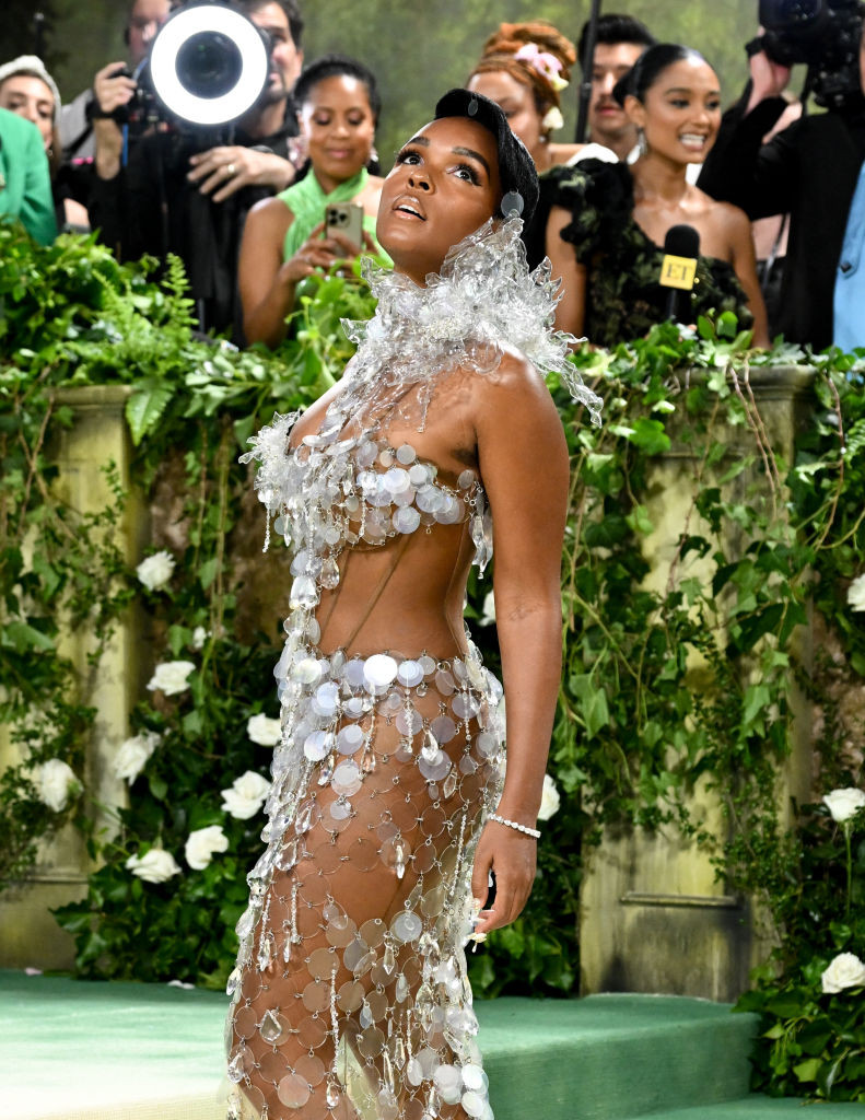 Vedeta nu a purtat o ținută prea confortabilă, motiv pentru care mobilitatea a fost dificilă. În timp ce poza pe scările Met Gala, Janelle Monáe și-a pierdut pentru o secundă echilibrul.