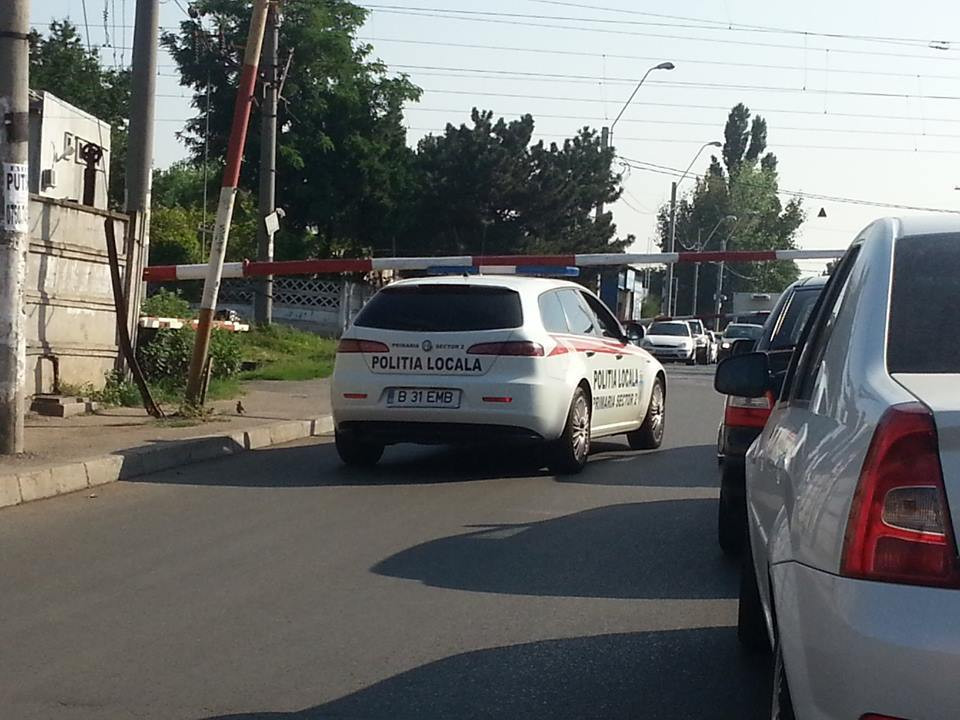 Pozele publicate pe Facebook arata o masina a politiei locale care intra pe contrasens si se aseaza aproape in totalitate dupa bariera la care ar fi trebuit sa opreasca. Imaginile au fost surprinse la bariera Baicului din Capitala.