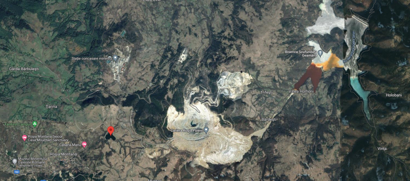 Lacul se află în apropierea carierei Roșia Poieni, care este încă în exploatare și care deversează în lacul din Geamăna, unde se află celebra Biserică Scufundată.