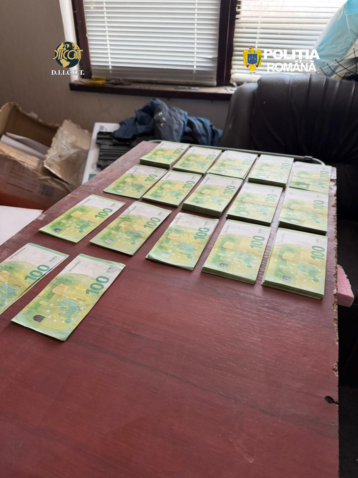 „În urma perchezițiilor efectuate în cursul zilei de ieri, 24 martie, în localitatea Burla, a fost identificată „fabrica de bani” amenajată într-un imobil aflat în construcție, amplasat într-o zonă izolată. În acest context au fost descoperiți și ridicați 1.281.400 de euro falși, diverși pigmenți și tipuri de holograme, coli din hârtie tip A3 folosite la imprimarea banilor, un dispozitiv CNC laser cu răcire pe aer, o presă termică, echipamente informatice și imprimante, precum și alte mijloace de probă”, a transmis Poliția.