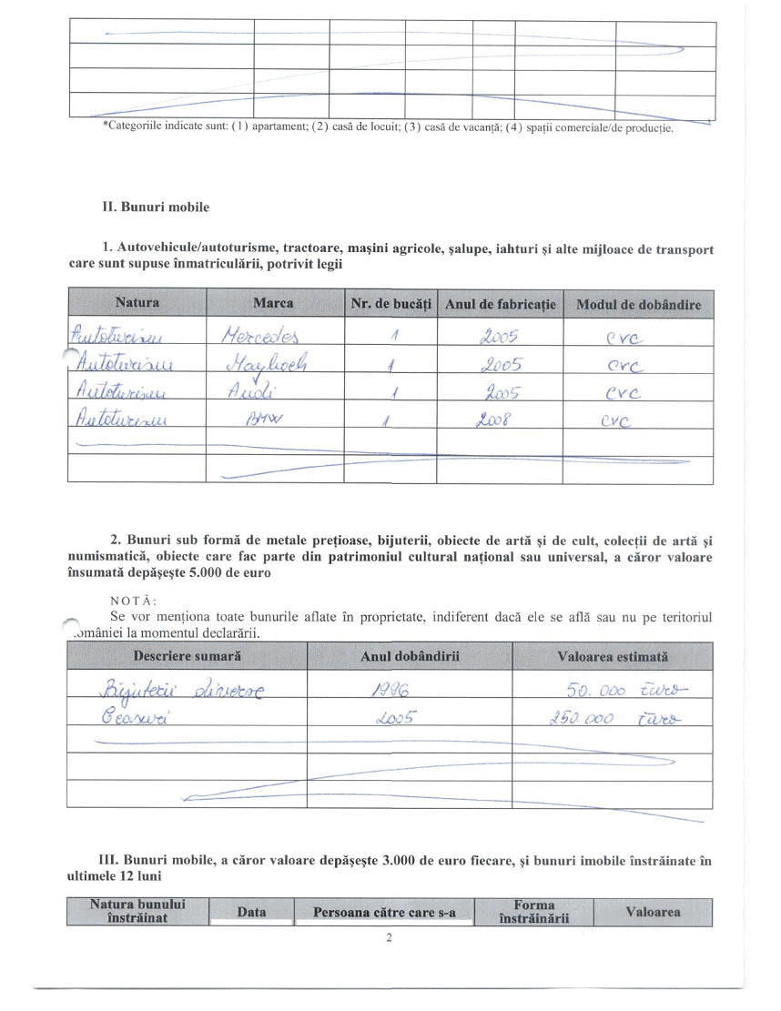 Deputatul PNL si-a pastrat cele patru autoturisme: Mercedes, Maybach, Audi si BMW, dar si bijuteriile de 50.000 de euro si ceasurile de 250.000 de euro.