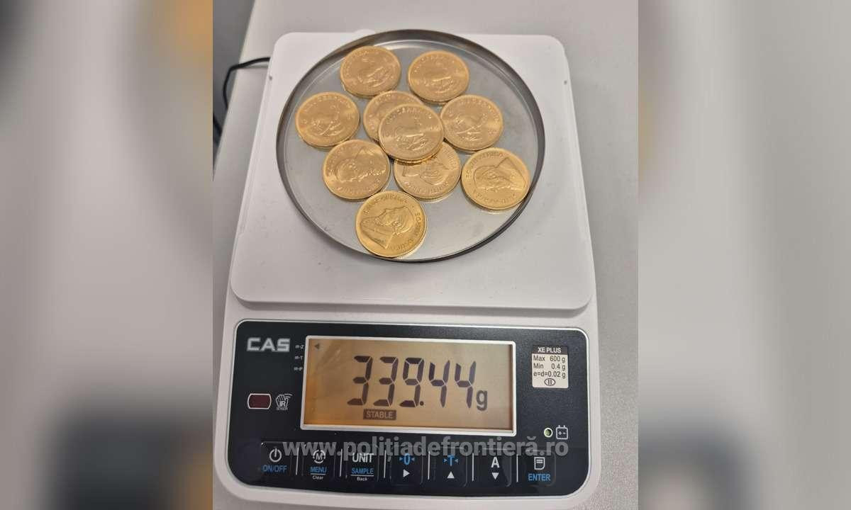 O femeie încerca să scoată din ţară zece monede de culoare galbenă, înscripţionate Suid Afrika- South Africa, pe care susţinea că le-a moştenit şi care au fost estimate la aproximativ 150.000 lei.