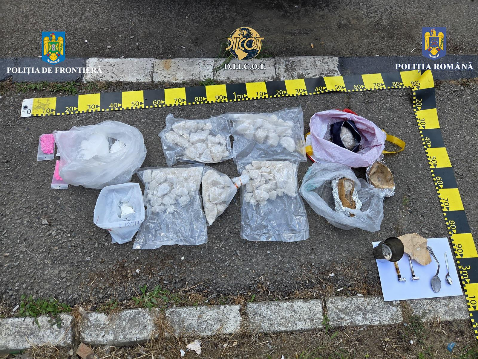 "În urma verificărilor efectuate, s-a constatat că ar fi deţinut, în autoturismul cu care s-au deplasat, aproximativ 5 kilograme de substanţă cristalină 2 MMC, 500 de grame de cocaină, 340 de grame de heroină, 250 de comprimate de ecstasy (droguri de mare risc) şi mai multe tablete cu substanţă activă alprazolam (drog de risc). Substanţele interzise au fost descoperite în bordul autoturismului şi în două genţi, ascunse printre diverse obiecte de vestimentaţie", se arată în comunicat.