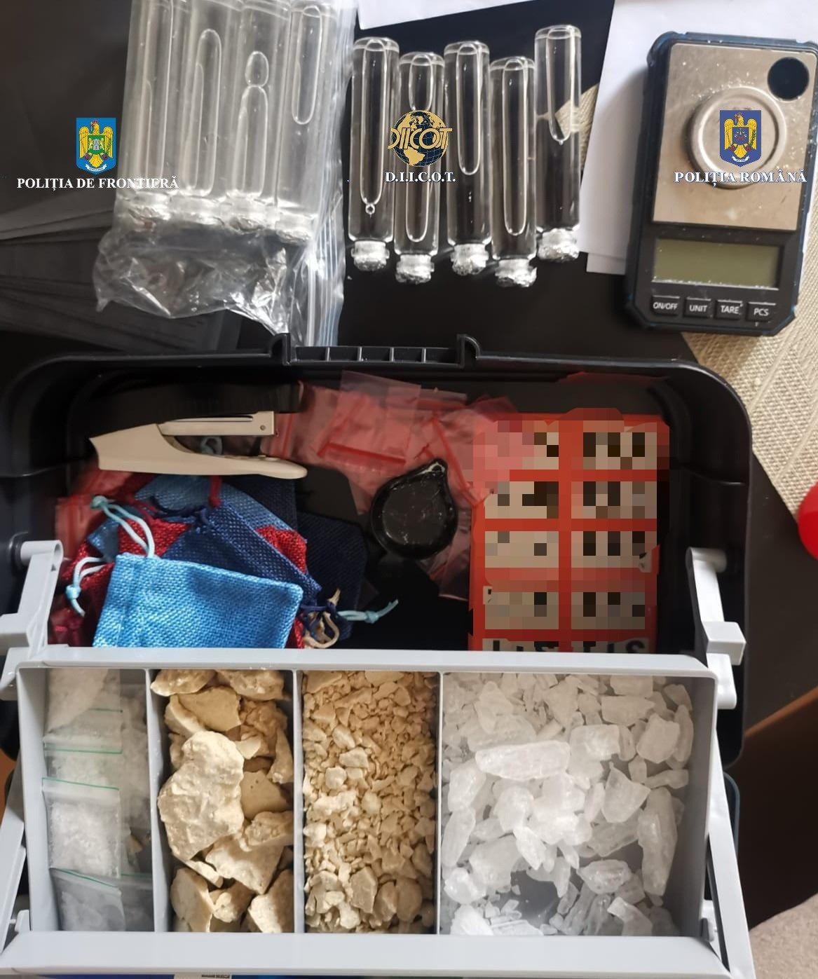 "În data de 26.04.2023, ora 20:00, s-a prezentat pentru a intra în ţară, călătorind din direcţia Londra, un cetăţean român, în vârstă de 40 de ani. În baza analizei de risc, după efectuarea formalităţilor de frontieră, poliţiştii de frontieră au solicitat lucrătorilor vamali efectuarea unui control amănunţit asupra bărbatului şi bagajelor acestuia. În urma controlului fizic efectuat asupra bagajului de cală, au fost descoperite mai multe plicuri, care conţineau o substanţă cristalizată de culoare transparentă, respectiv o substanţă pulverulentă de culoare albă, ambele fiind presupuse a fi substanţe interzise. S-a procedat la cântărirea substanţelor, rezultând greutatea brută de 200 grame, presupuse a fi metamfetamină şi mefedronă, droguri de mare risc, urmând a fi trimise spre expertiză la laboratorul de specialitate", a transmis Poliţia de Frontieră într-un comunicat de presă.