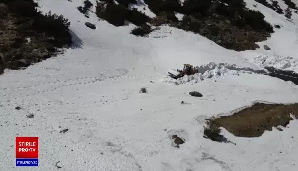Deszăpezire în toi pe Transfăgărășan și Transalpina, în luna mai. Sunt și straturi de șapte metri de zăpadă înghețată