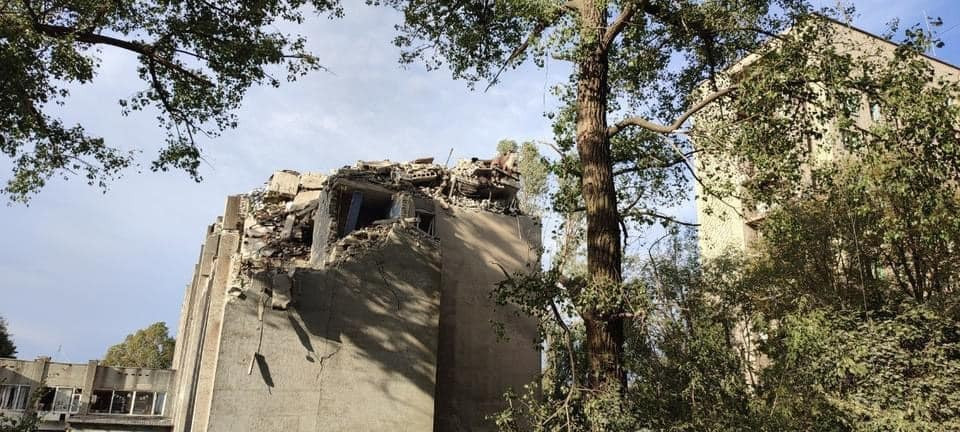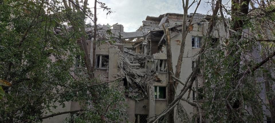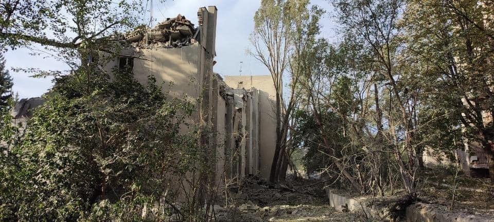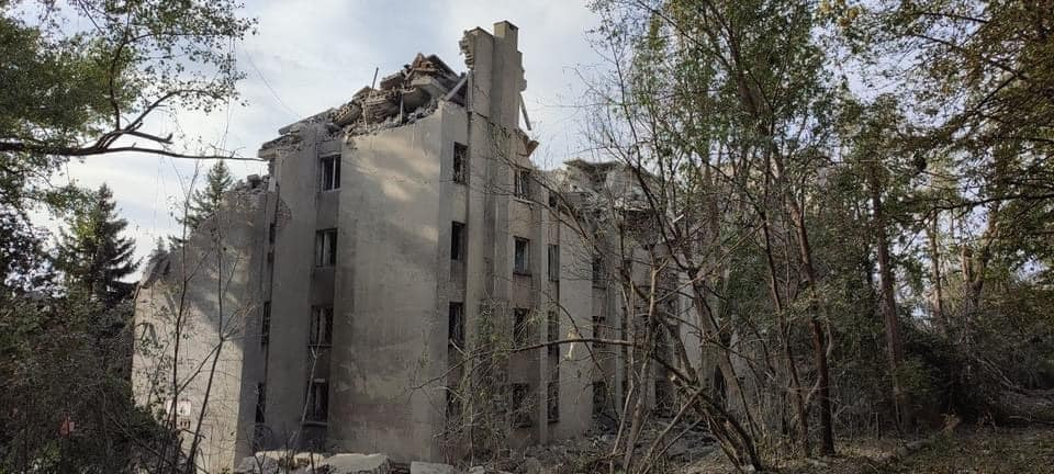 Imaginile distribuite de Gaidai, pe Facebook, par să arate rămășițele deteriorate ale unui hotel care fusese folosit ca bază de soldații ruși în Kadiivka, conform Daily Mail.