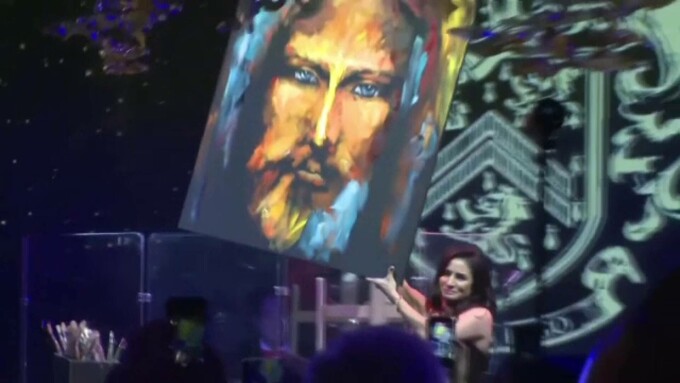 Președintele a condus apoi licitaţia pentru un tablou cu chipul lui Iisus Hristos, pictat pe loc de artista Vanessa Horabuena. Trump a spus că încasările vor fi donate unui spital pentru copii și unui departament de poliție. A început licitația de la 100.000 de dolari, dar a smuls oferte mult mai generoase.