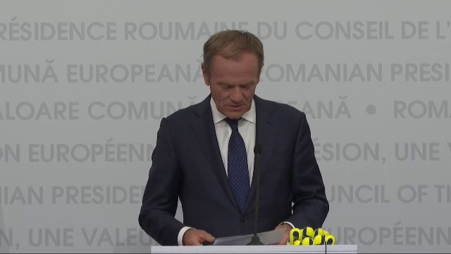 Președintele Consiliului European, Donald Tusk, a susținut câteva declarații în limba română, joi, la finalul Summitului de la Sibiu. Acesta a afirmat că „pur și simplu s-a îndrăgostit de Sibiu”.