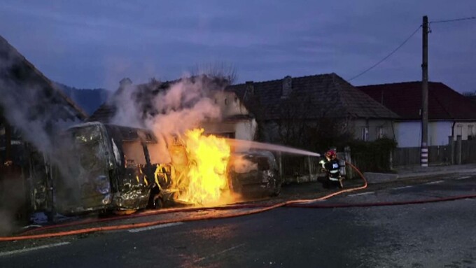 Încă nu se luminase de ziuă, când o bubuitură puternică a scos oamenii din case. Două microbuze ardeau cu flăcări uriașe, alimentate de gazul care țâșnea cu presiune dintr-o conductă spartă.