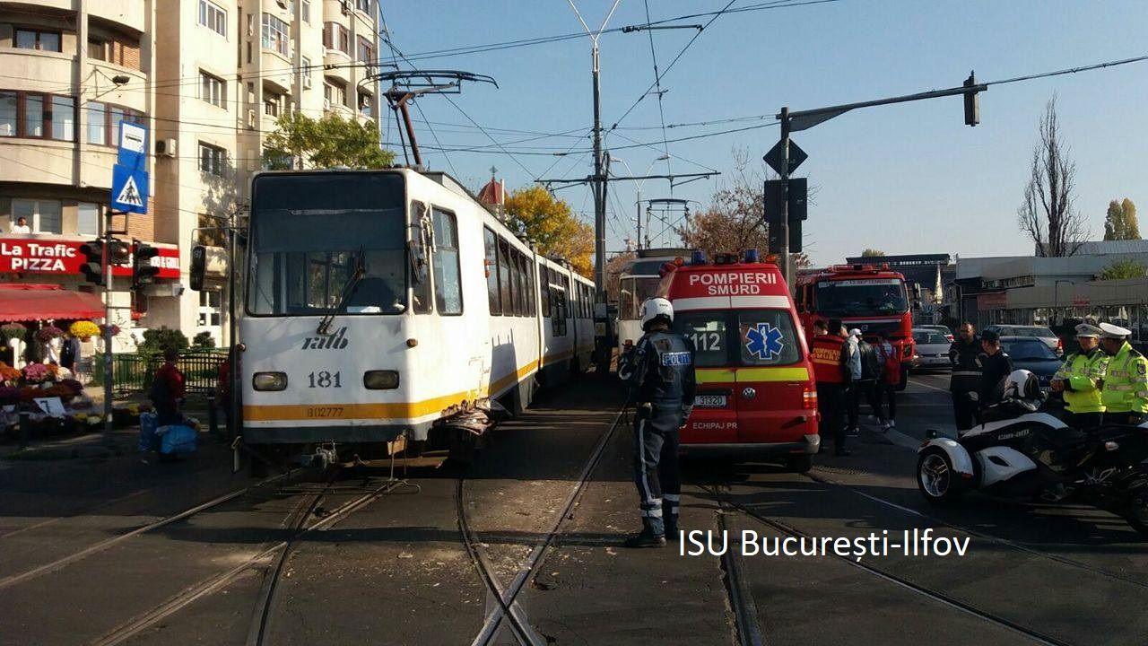 Două tramvaie s-au ciocnit, sâmbătă după-amiază, într-o intersecție din București.