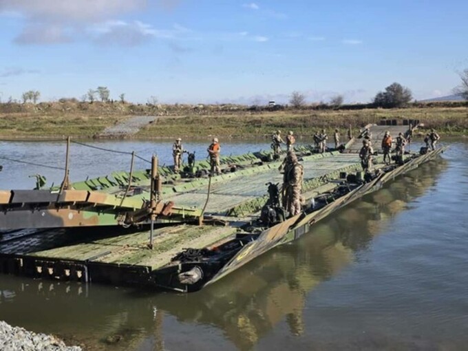 Exercițiu NATO în România: militarii români, francezi și portughezi au construit în timp record un pod plutitor peste Mureș
