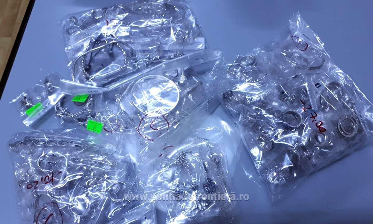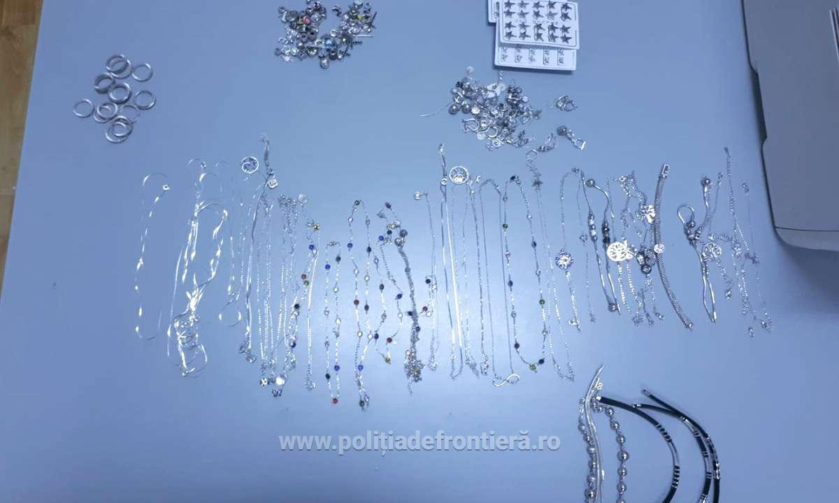 Cu ocazia verificărilor amănunțite efectuate asupra mijlocului de transport, polițiștii de frontieră au descoperit, ascunse și nedeclarate, în bagajele a două persoane de sex feminin, N.S. şi C.A., în vârstă de 36, respectiv 37 de ani, pasagere în autoturism, cantitatea totală de 1.356 grame bijuterii din metal alb, susceptibile a fi din argint.