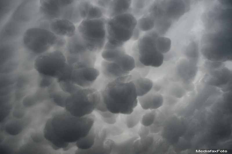 O simpla cautare pe internet si misterul se rezolva repede: fenomenul poarta numele de nori mammatus si nu este unul periculos. "Mammatus, cunoscut si ca mammatocumulus (cu sensul de "nor mamar" sau "nor-san"), este un termen meteorologic aplicat unui model celular de pungi suspendate dedesubtul bazei unui nor. Numele mammatus este derivat din latinescul mamma (care inseamna "uger" sau "piept"). Apare in zonele cu clima tropicala, dar si in cele cu clima temperata, indicand ploi abundente cu picaturi mari", potrivit Wikipedia.
