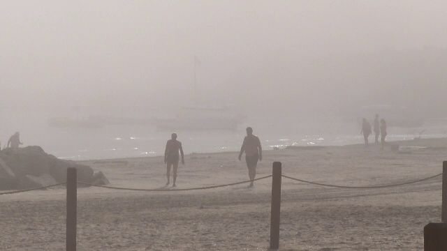 Salvamarii au arborat steagul roșu, care interzice turiștilor să intre în mare. Unul dintre salvamari a ieșit cu caiacul pe mare și a constatat că vizibilitatea este sub 20 de metri. Ceea ce înseamnă că dacă o persoană ar fi în pericol șansele ca ea să fie observată de pe mal sunt aproape nule.