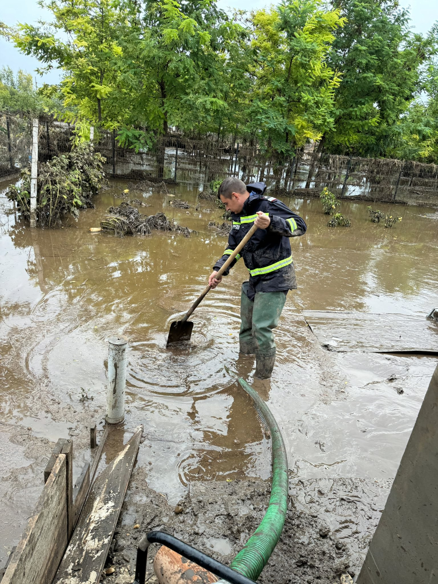 În tabăra de sinistrați nu prea mai sunt sinistrați, pentru că oamenii au plecat la casele lor pentru a încerca să se mute acolo. Sunt în special ajutoare de la rezerva de stat. Oamenii au cerut roabe și lopeți ca să poată să curețe noroiul din curți.