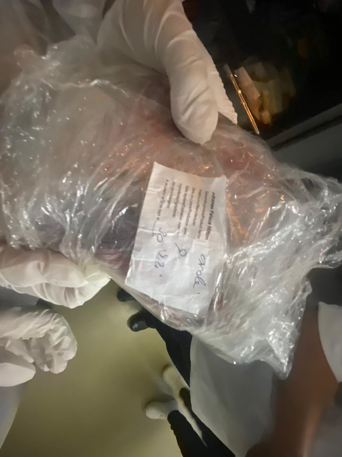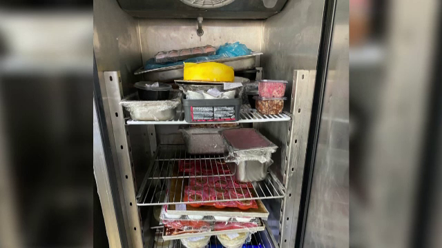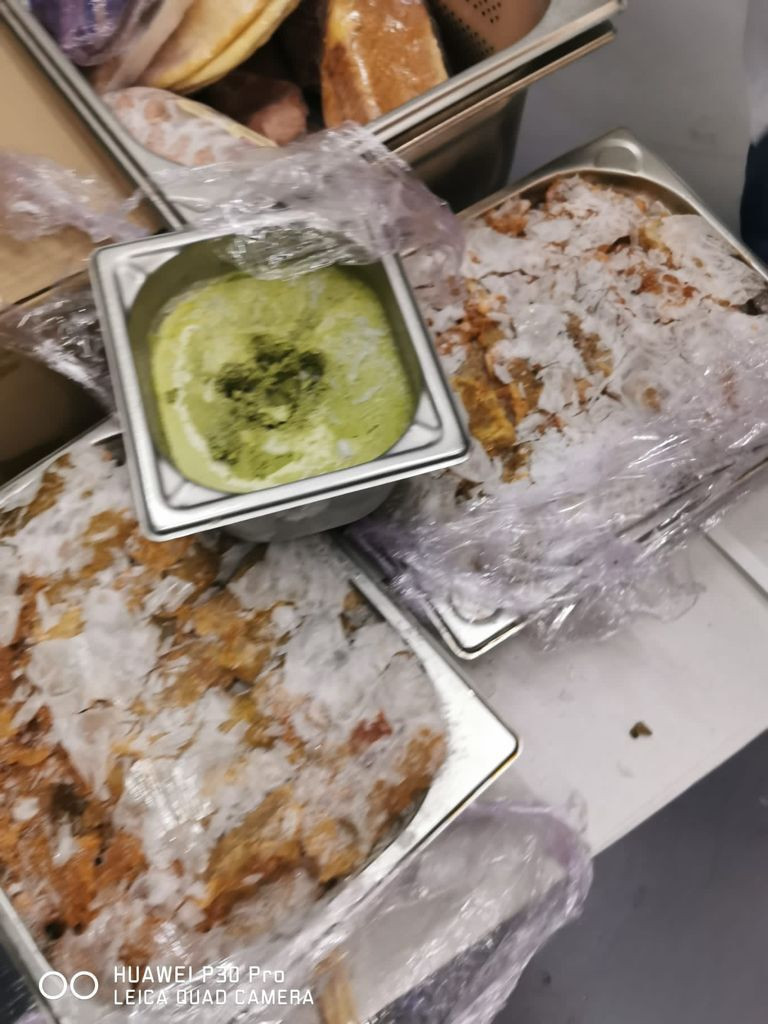 Veniţi în control, reprezentanţii Autorității pentru Protecția Consumatorilor au filmat imagini cu alimente care urmau să fie gătite, ţinute însă la temperatura camerei şi nu la –18 grade, cum este recomandat. Oficialii spun că multe produse erau expirate, de la carne şi brânzeturi, până la prăjituri şi produse de panificaţie. În frigider, inspectorii au găsit platouri cu mâncare de la mesele anterioare.