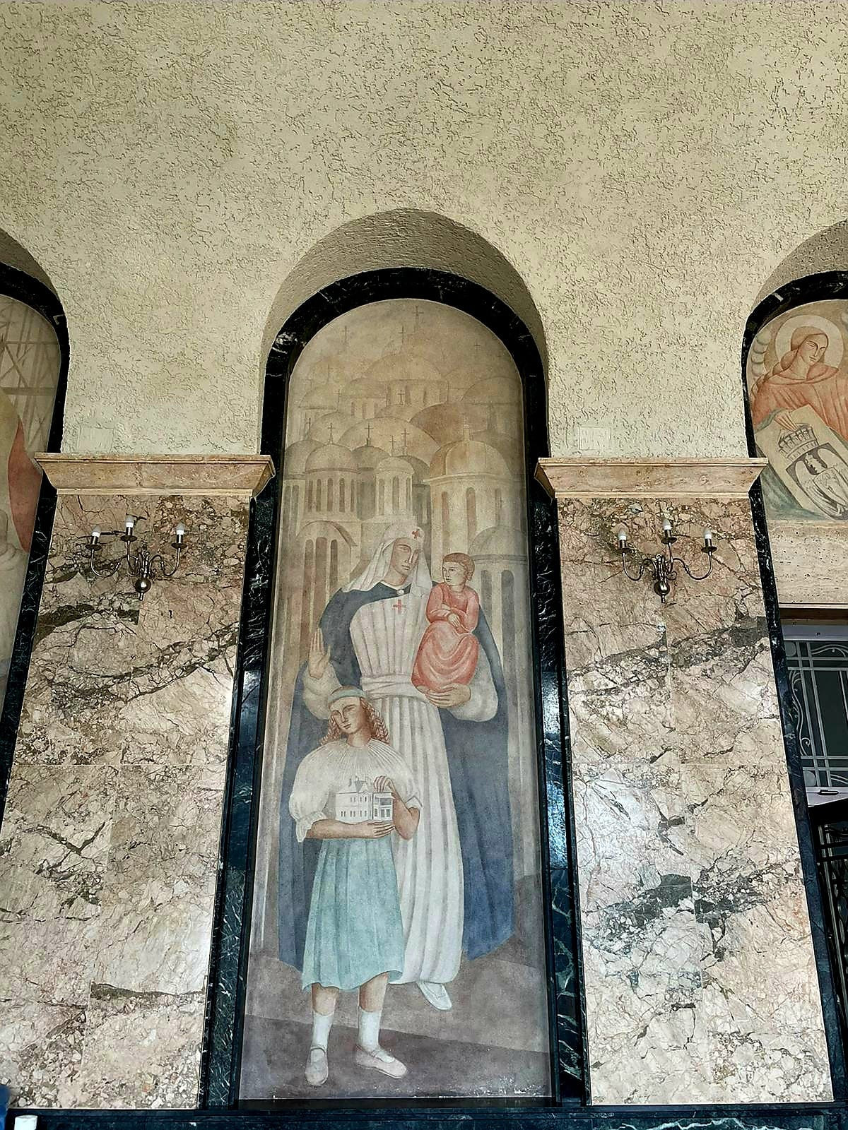 În privința Sălii de Consiliu, timpanele mari şi panourile laterale în formă de timpane alungite din Sala de Consiliu au fost împodobite cu picturi monumental-decorative, care aveau ca temă simbolul suprem al organizării statului, atât din punct de vedere social-politic, cât şi spiritual, simbol care reprezenta monarhia la acea vreme, conform reprezentanților Primăriei Sectorului 1. Frescele îl prezentau, printre altele, pe regele Carol al II-lea, alături de alte personaje alegorice care aveau legătură cu principalele instituţii de stat sau momente din viața socială și istoria Capitalei.