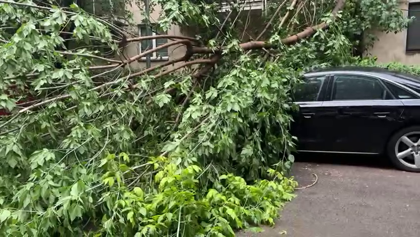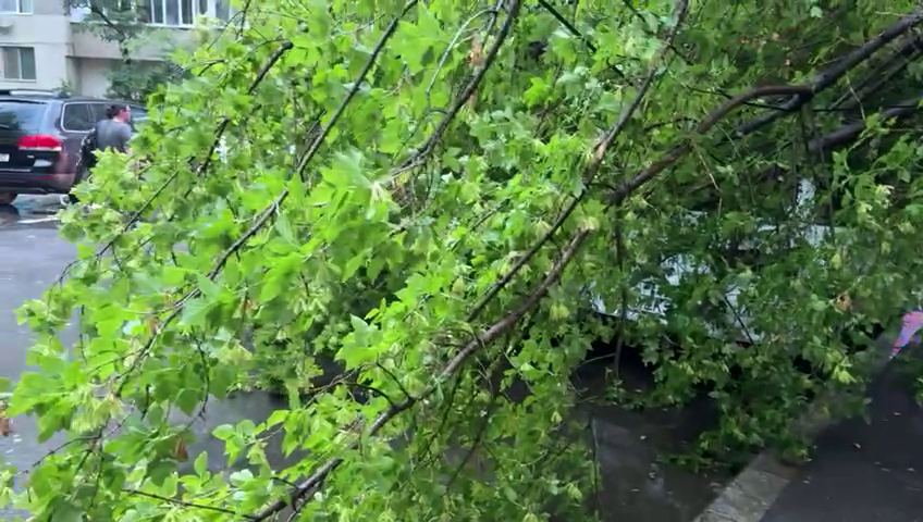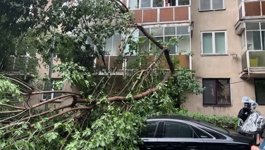 Furtună în București. Mai mulți copaci au fost doborâți de vântul puternic