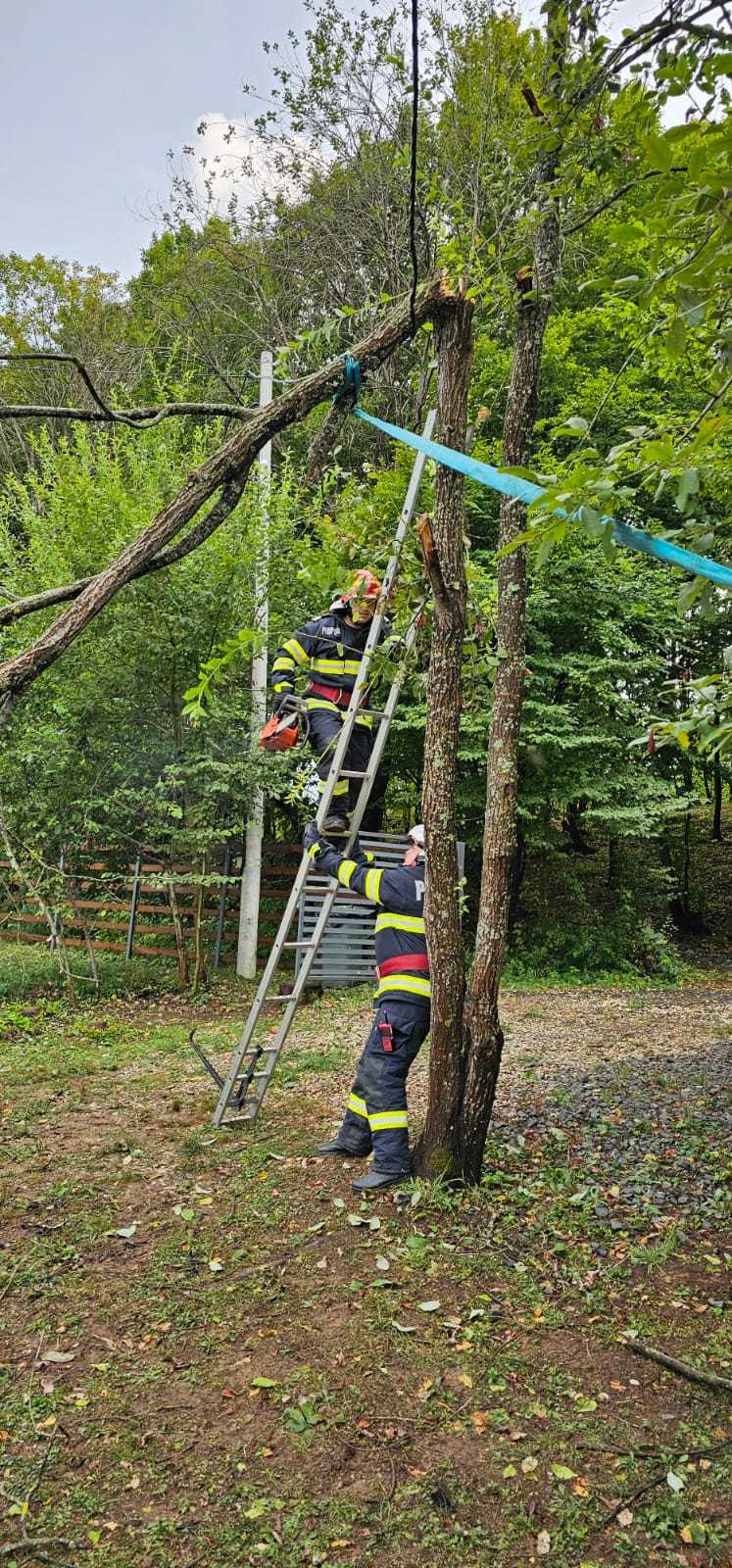 O femeie care se afla în apropiere a suferit un atac de panică şi a fost asistată medical de către echipajul SAJ prezent la faţa locului, în timp ce pompierii au acţionat pentru segmentarea şi degajarea materialului lemnos.